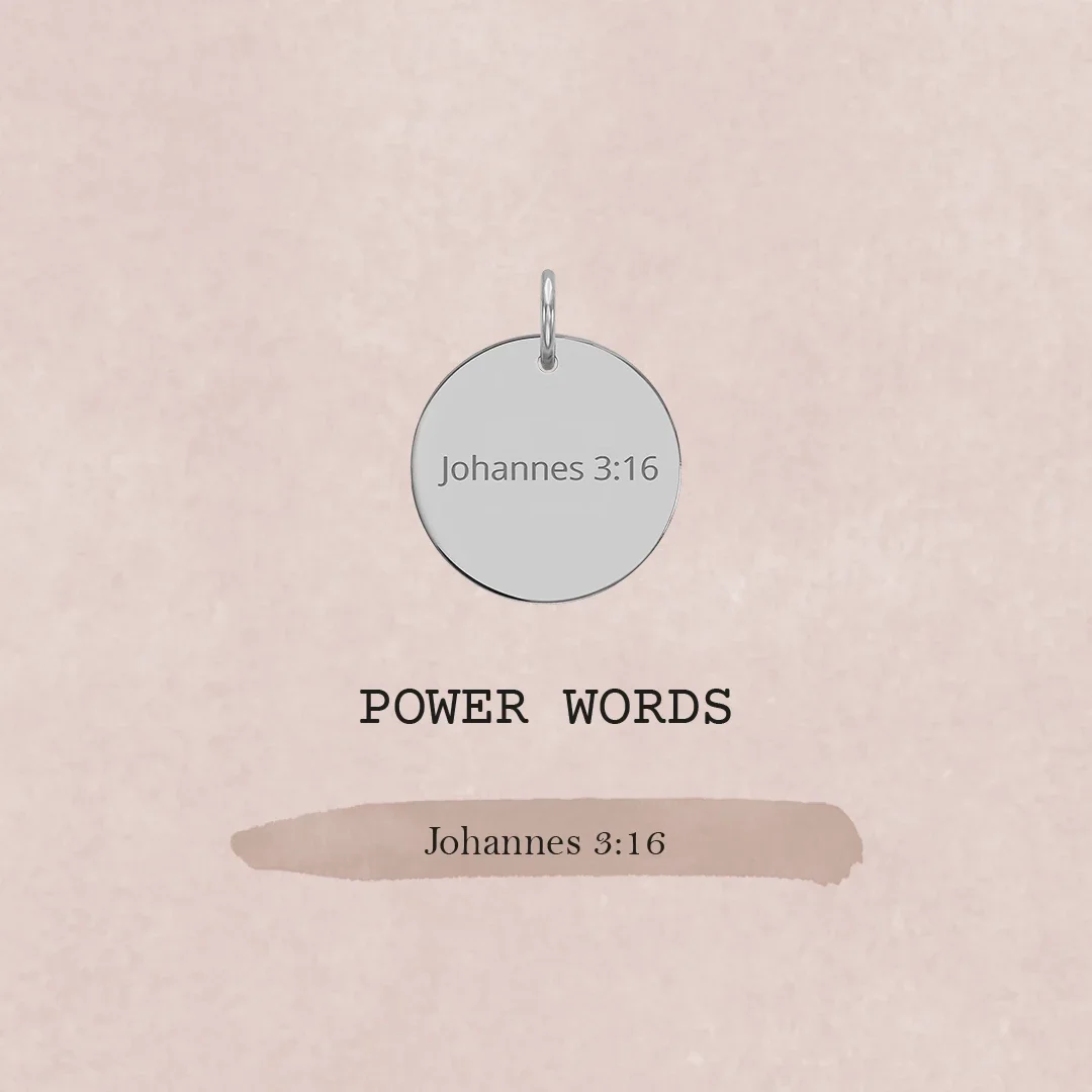 Deze zilverkleurige hanger maakt je ketting of armband helemaal af. De hanger verwijst naar en herinnert jou op subtiele wijze aan de mooie en krachtige beloften van God die Hij geeft middels zijn Woord. Deze christelijkehanger is gemaakt van stainless Steel en heeft een diameter van ø 1,5 cm. Stainless steel is kleurvast en allergie-proof.