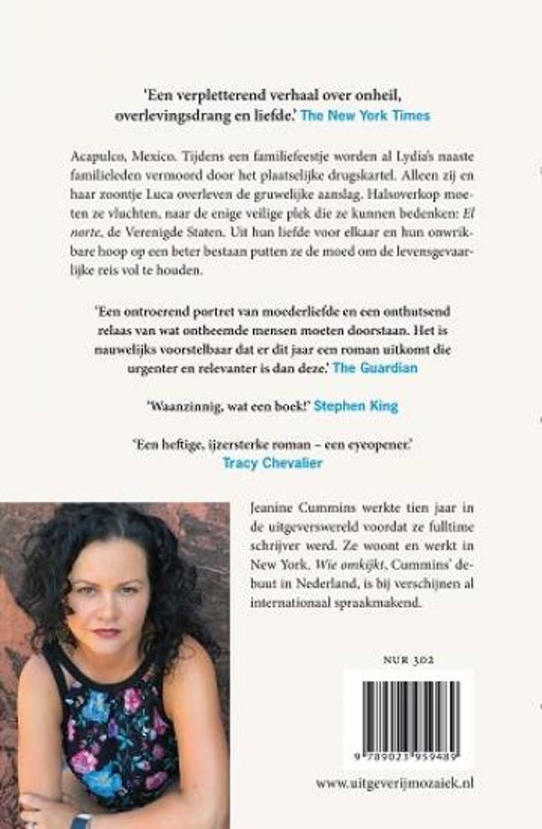 Een binnenplaats in Acapulco, Mexico. Een familiefeestje. Een gruwelijke aanslag. Alleen Lydia en haar achtjarige zoontje Luca overleven, en moeten onmiddellijk zo ver mogelijk wegvluchten om uit de greep van het drugskartel te blijven. Wat volgt is een adembenemend vluchtverhaal: dwars door Mexico, bovenop de goederentrein die ook wel ‘het Beest’ wordt genoemd, op weg naar de Amerikaanse grens.