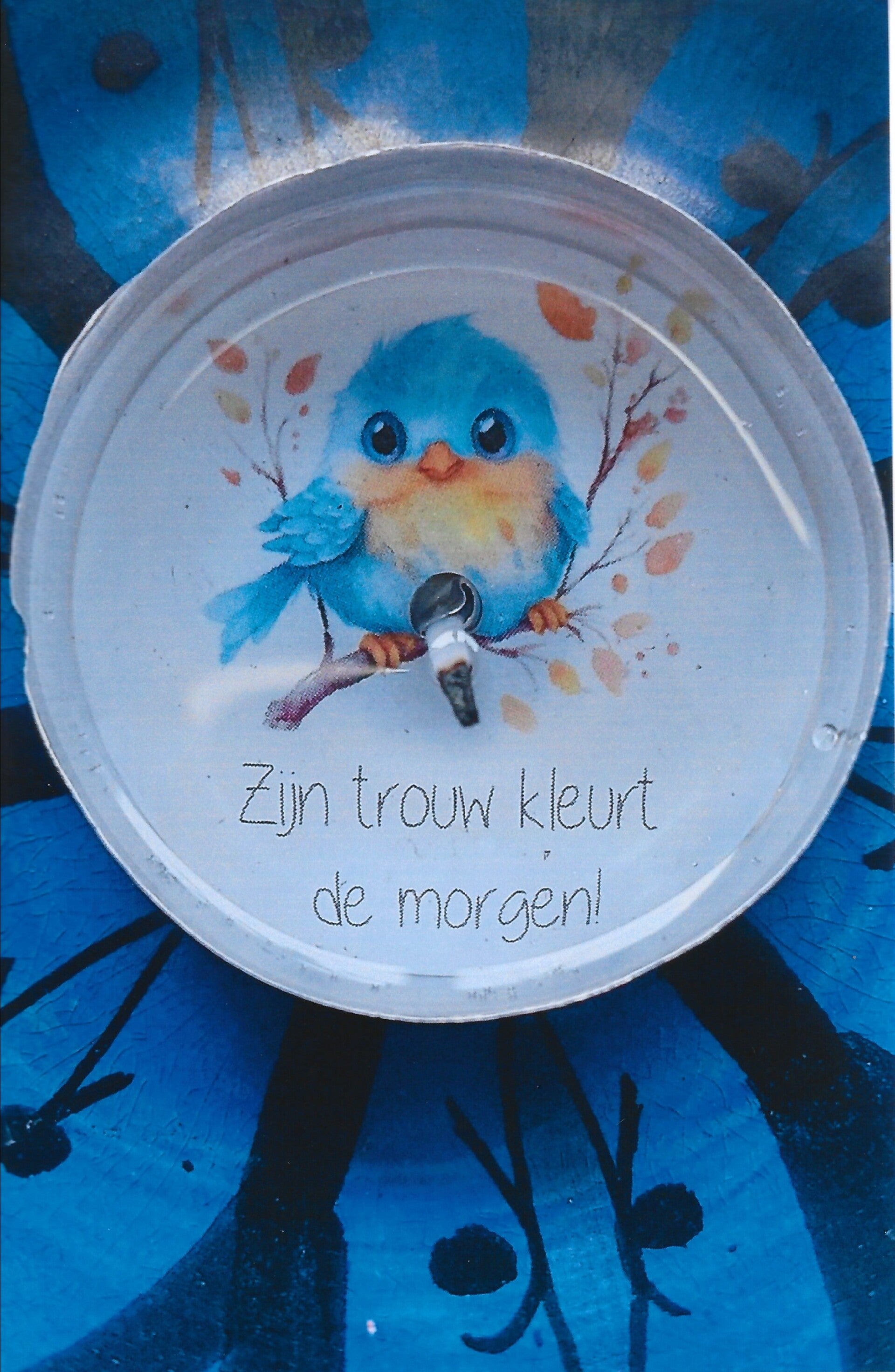 De tekst: Zijn trouw kleurt de morgen is een voorbeeld.