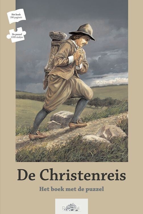 Deze doos bevat zowel een boek als een puzzel! Bij het bekende boek De Christenreis dat in de doos zit ontvangt u ook een puzzel van 1000 stukjes.