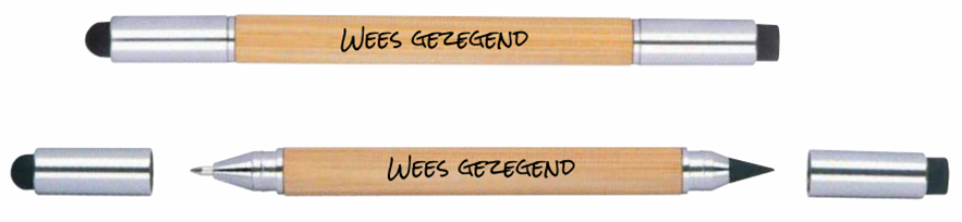 Milieuvriendelijke 2-in1 pen/potlood met gum penhouder van bamboe.