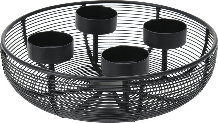 Adventskaarshouder inclusief 4 kleine Pilar kaarsen 4x5cm Materiaal: ijzer geweven - Afmeting: 20,5x6cm