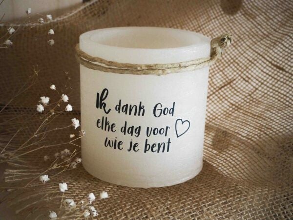 Windlicht S “Ik dank God elke dag voor wie je bent” Ivoor