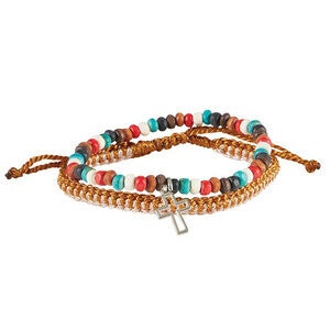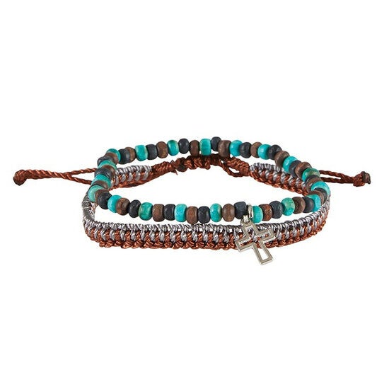2-delige dubbele bedelarmband met kruis/ kralen koord .Kleur: divers