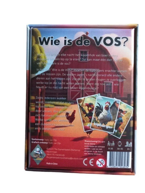 In het spel "Wie is de vos?" moeten de kipburgers er achter zien te komen wie de vossen zijn. De vossen jagen 's nachts terwijl alle andere dieren aan het slapen zijn. Zonder te praten mogen ze overleggen welke kip ze die nacht willen opeten.