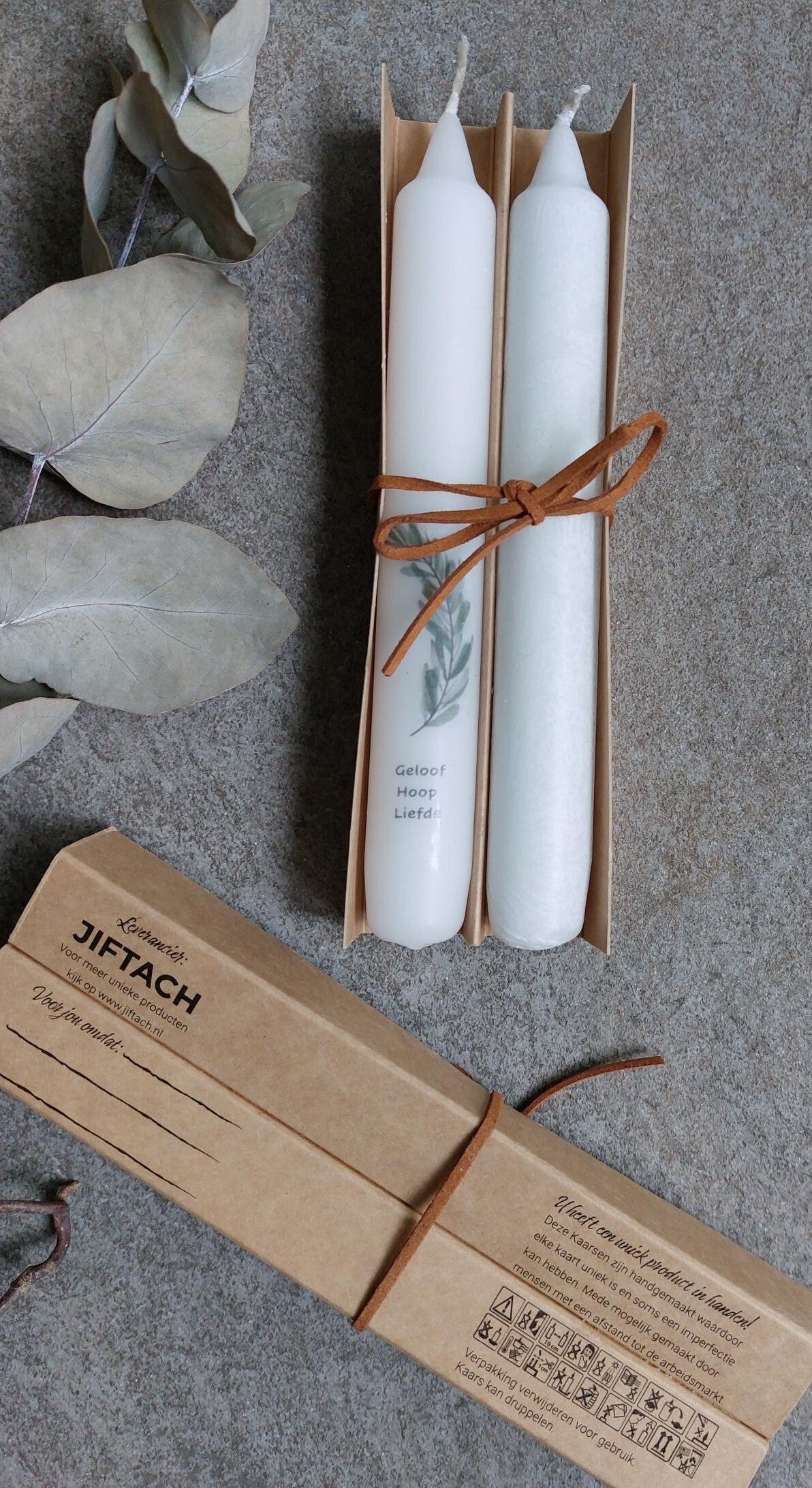 U heeft een uniek product in handen! Deze kaarsen zijn handgemaakt waardoor elke kaars uniek is en soms een imperfectie kan hebben. Mede mogelijk gemaakt door mensen met een afstand tot de arbeidsmarkt! Mocht u de set dinerkaarsen weg willen geven dan kunt u op de achterzijde nog wat lieve woorden kwijt!