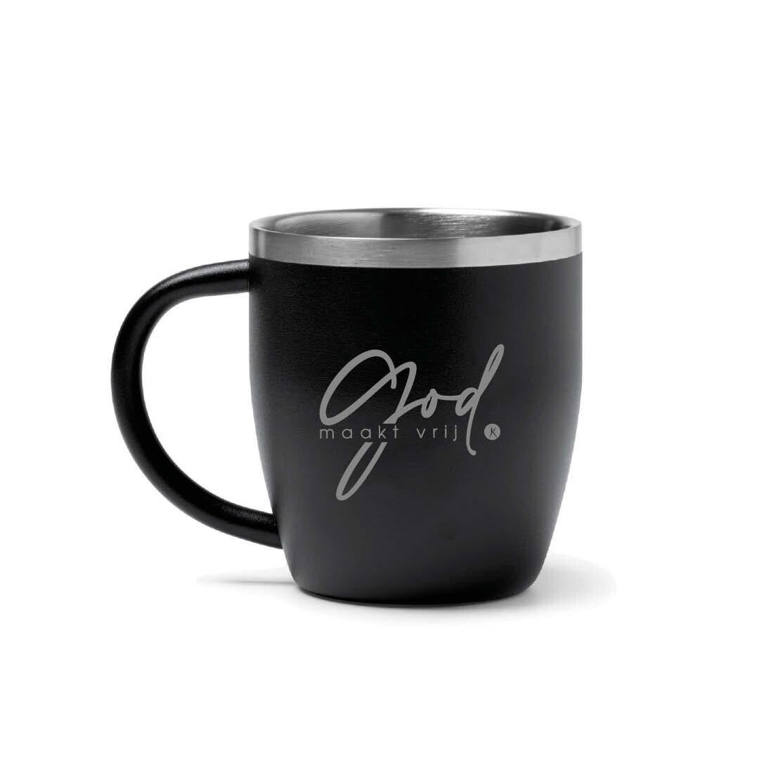 Deze stainless steel mokken zijn ideaal voor dagelijks gebruik. De mokken zijn voorzien van de tekst ‘God maakt Vrij’, wat vreugde en blijdschap symboliseert. Verkrijgbaar in verschillende kleuren, zodat je altijd een mok kunt kiezen die bij je past.