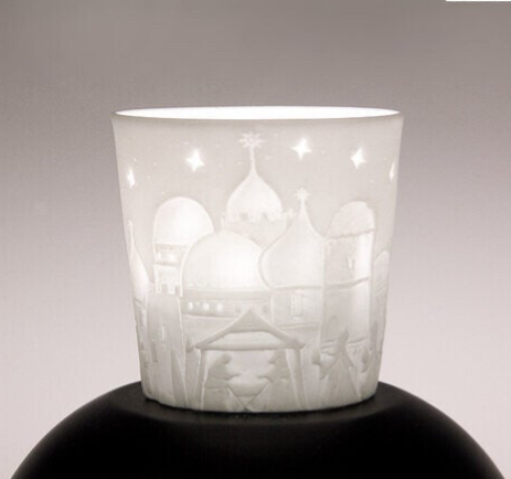 Porseleinen kandelaar bethleheml. Afmetingen: 6 cm hoog, 5,5 cm doorsnede.