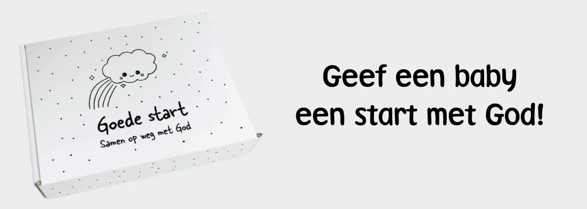 De 'Goede Start-doos' is een waardevol kraamcadeau voor jonge, christelijke ouders. De doos zit boordevol inspirerende materialen die ouders helpen om samen met hun kindje op zoek te gaan naar God en Zijn plek in het gezin — om zo Zijn liefde van jongs af aan door te geven.