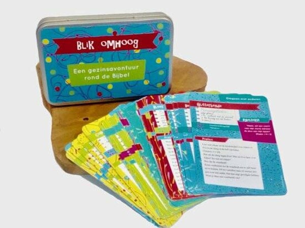 Het blikje bevat 26 spelletjes en activiteiten voor het hele gezin, met de Bijbel als basis. Een mix van lol maken en serieus nadenken. Momenten met diepgang, maar ook gezelligheid. Veelal kort maar krachtig en vooral makkelijk uitvoerbaar. Deze ideeën zijn geschreven voor kinderen van de basisschoolleeftijd, vanaf groep drie tot ca. groep acht. Maar grotere of kleinere kinderen kun je er ook prima op hun eigen niveau bij betrekken.