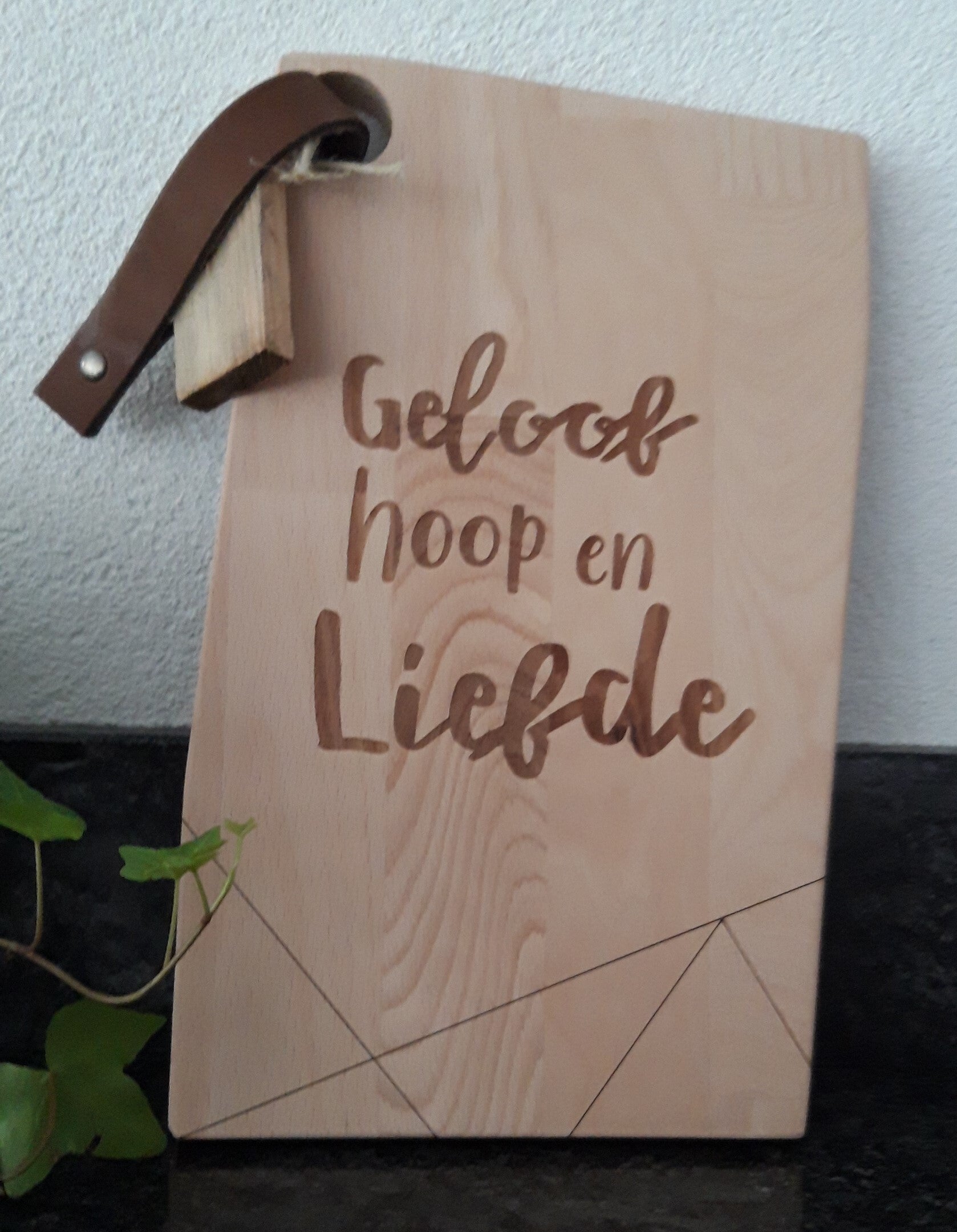 7865440 - Snijplank - Leren lus - Geloof Hoop Liefde